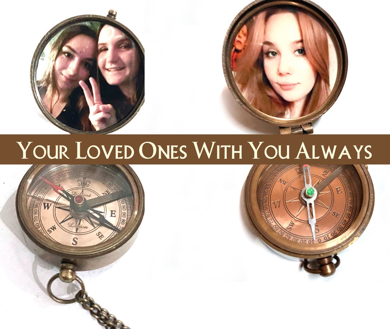 Personalized compass, Engraved compass, Photo compass, Custom Gift compass, Compass with customized photo, Antique vintage style compass
